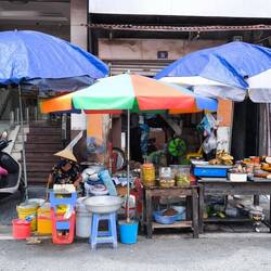 Während wir im Café an der Ecke sitzen, kommen immer wieder Straßenverkäufer und bieten ihre Waren feil. Es werden Fächer , Regenschirme ☂️ und allerlei anderer Kram angeboten. Ein freundliches "Nein" reicht meistens aus und die Verkäufer ziehen weiter.