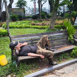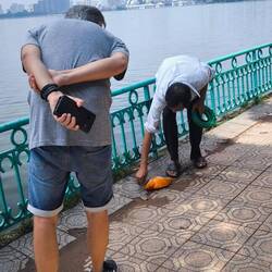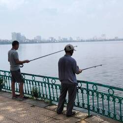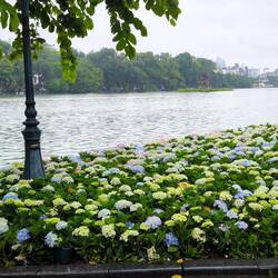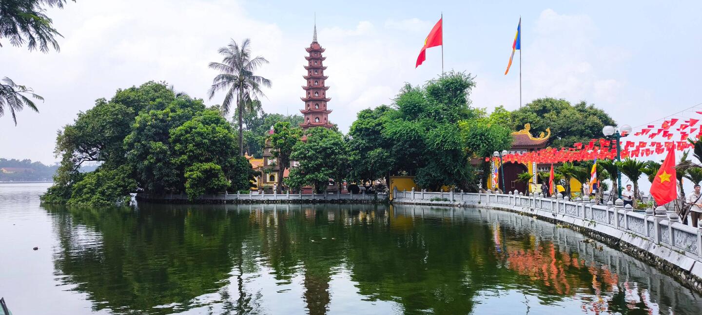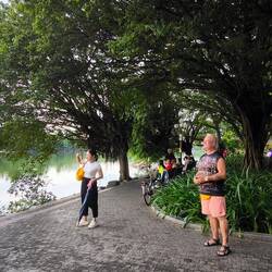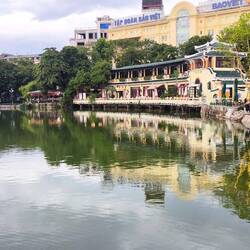 Ein kurzer Stopp im Hotel 🏨, danach laufen wir zum "Hoan-Kiem-See", der grünen Oase im Herzen der Stadt.