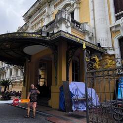 laufen um einige Ecken, entlang von mit Menschen überfüllten Straßen... 😲. Und da stehen wir auch schon vor dem prachtvollen Eingang unseres Hotels 🏨.