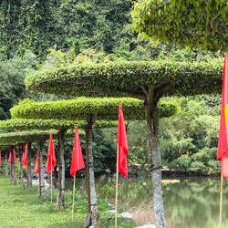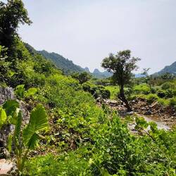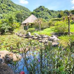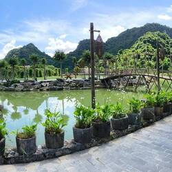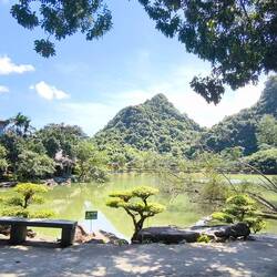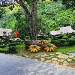 Wir sind in "Thung Nham", einem Ökotourismus-Areal in einer Karstlandschaft ⛰️, bekannt für sein Vogelschutzgebiet 🦅, seine Höhlen 🦇, Bootstouren 🛶, Gärten 🌺 und Obstplantagen 🥭 🍌.
