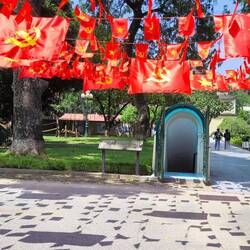 Nach unserer kleinen Pause neben den Bahngleisen 🛤️ laufen wir bis zur nächsten Straßenkreuzung über die "Trainstreet", an den bunt 🎨 geschmückten Cafés vorbei. Die Besichtigung eines Tunnelhauses können wir knicken..., wegen Renovierungsarbeiten 🔨🪚 bis November bleibt das sogenannte "Old House" in der Ma Ma Straße 87 geschlossen.