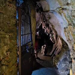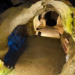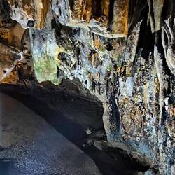 Je tiefer der Weg in die Höhle führt, desto niedriger wird die Decke, dahinter wieder hohe Räume von denen einige die Ausmaße einer Kathedrale haben.
