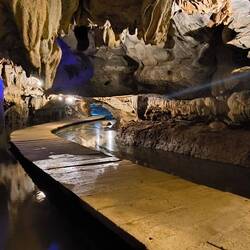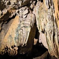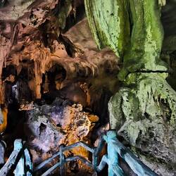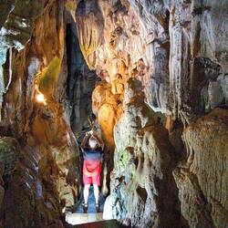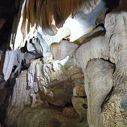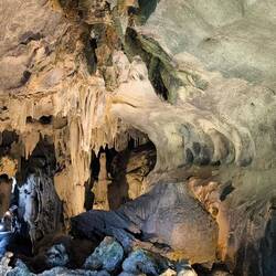 Wir laufen an, um und unter spektakulären Stalagmiten und Stalaktiten, die über Jahrtausende entstanden sind, vorbei.