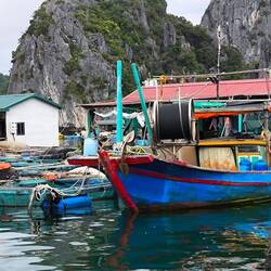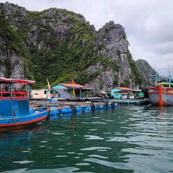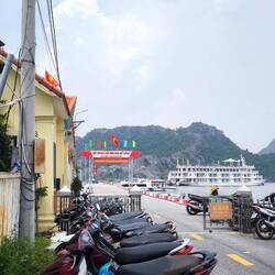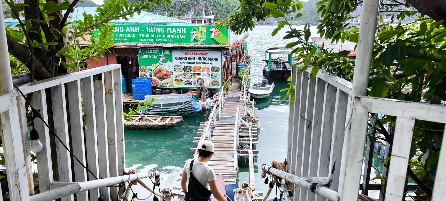 Am Pier "Cai Beo" machen wir uns also auf die Suche nach einem Boot. Kaum am Pier angekommen, folgt uns unermüdlich ein Bootsvermittler, ruft für eine zwei- bis dreistündige Bootstour horrende Preise 🤑 auf.