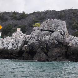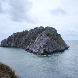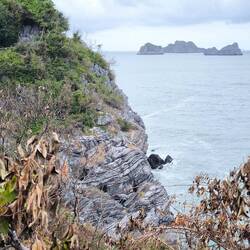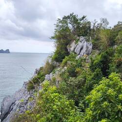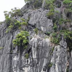 Durch ständige Wellen- und Gezeitenwirkung 🌊entstehen am Sockel der Felsen Erosionen, viele Inseln wirken dadurch wie auf Stelzen stehend, unten ausgehöhlt, oben dicht mit Vegetation 🌿🍃🌿 bewachsen.