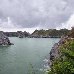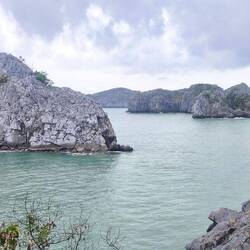 Wir tuckern gemütlich durch die "Lan Ha Bucht" mit ihren versteckten, von Kalksteinfelsen ⛰️ umgebenen, Lagunen 🏞️, die nur mit einem Kajak oder kleinen Boot 🛶 zugänglich sind.