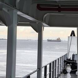Fünfundzwanzig Minuten dauert die Überfahrt ⛴️, es stinkt nach Öl 🛢️und es ist laut 🔊 hier auf dem großen "Kahn".