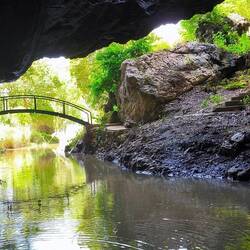 über dem Wasser, scheint als Fußweg durch die Höhle zu führen. Dann mal auf ins Abenteuer.