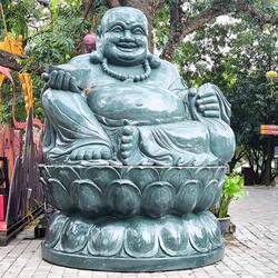 Ich erreiche den Pavillon, "Nghenh Phong Cac", von dem aus ich einen Blick 👀 auf die ganze Stadt Ninh Binh habe 🤗. Dahinter eine große kunstvoll gearbeitete Bronzeglocke 🩶🔔🩶, die von einem Drachenkopf 🐲 gehalten wird, der aus einem Felsen ragt. Daneben führt eine Steintreppe zum Gipfel des Berges ⛰️ mit der "Ky Lan Pagode", eine alte, sehr kleine Pagode mit geschwungenem Dach. Sie wird von Statuen kaiserlicher Schutzlöwen🦁auf beiden Seiten bewacht. Im Inneren schmücken goldene Buddha-Statuen den Raum.