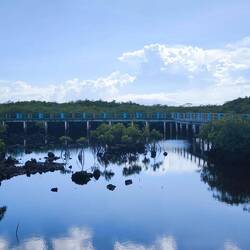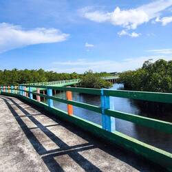 Es ist ein erhöhter befestigter Betonweg mit einer Länge von 1,8 km, der sich durch den Mangrovenwald schlängelt.