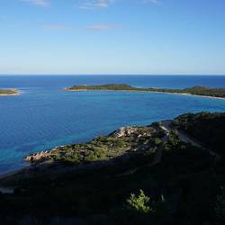 Nun sind wir endgültig auf dem Rückweg Richtung Olbia. Dabei haben wir noch diese schöne Halbinsel entdeckt. Die übersetzt aufgrund ihrer Form "Pferde-Schweif" heißt.