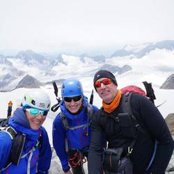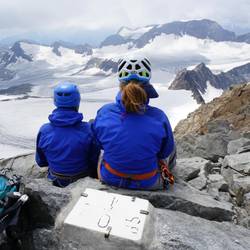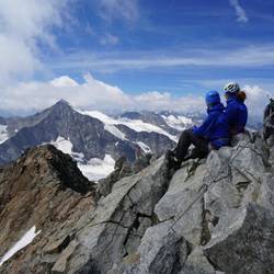 An der Lübecker Scharte tauschten wir die Steigeisen gegen Helme aus, denn ab hier ging es teilweise recht ausgesetzt auf dem Lübecker Steig in leichter Kletterei den Grat entlang in Richtungもっと詳しく