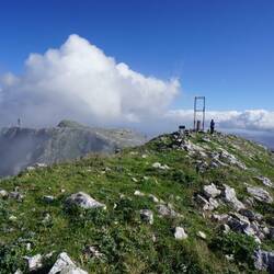 Im kalten, stürmischem Wind harrten wir dann am Gipfel eine gefühlte Ewigkeit aus, bis die Wolken endlich den Blick nach unten frei gaben. Und das Warten hatte sich gelohnt.
