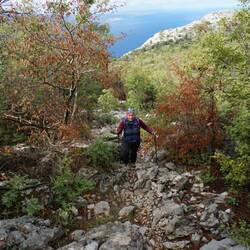 Ab dem Punkt wurde der Weg ziemlich steil und felsiger. Der Wind hatte unterdessen auch wieder ziemlich zugelegt, aber noch liefen wir im Windschatten.Leia mais