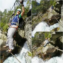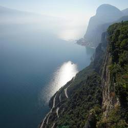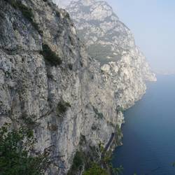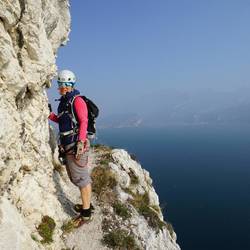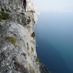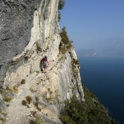 Die freie Aussicht auf den See und den Abgrund bleiben die ganzen 2 Stunden in der Wand erhalten, dazwischen gibt es dann noch ein paar C/D Schwierigkeiten zu meistern (an fragwürdigen Stahlseilen)Read more
