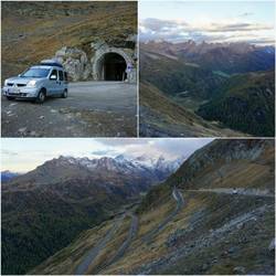 Von Ötztal über Hochgurgl ging es hoch zum Timmelsjoch auf 2507m. Bei der stellenweise extrem steilen Pass-Straße, brauchten wir alle 85 Pferde unseres voll beladenen Kangoo's.