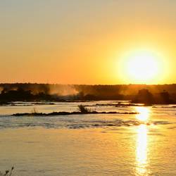 In der Regenzeit, wenn der Sambesi-Fluss Hochwasser führt, ist der Wasserfall durch den Sprühnebel kaum zu sehen, aber seine ganze Wucht ist zu erleben, wenn Millionen Liter Wasser in den Abgrund donnern. Die Viktoriafälle werden aus gutem Grund auch Mosi-oa-Tunya gennant - „donnernder Rauch“.