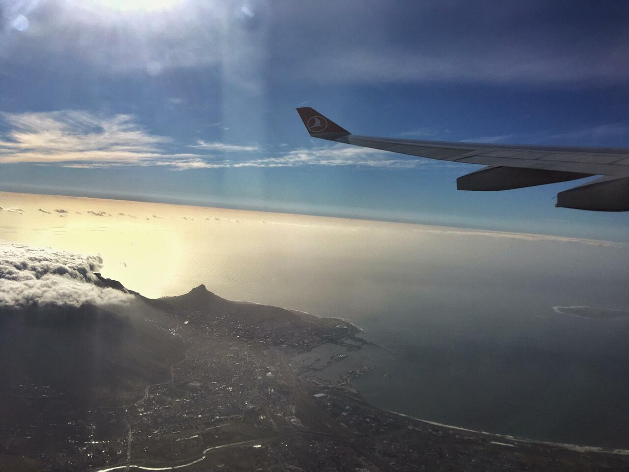 Noch ein letztes Mal sehe ich das Kap der guten Hoffnung, den Tafelberg und den Lionshead.