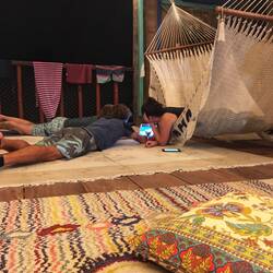 Irgendwie gehören einfach alle zur Familie, die man mag. Und genau das spüre ich auch. Ich bin Teil dieser Familie. Gehe morgens brav zur Schule und mittags, wenn ich nicht gerade am Strand liege, sitze ich mit 2 bis 10 „Familienmitgliedern“ vor dem Haus und schaue auf die Straße. Dabei muss auch nicht zwingendermassen gesprochen werden. Anfangs ein kaum aushaltbarer Zustand für mich. Doch ich komme schnell rein. Einfach sitzen und vor sich hin gucken. Als ein Backpacker auf seinem Motorrad vorbeifährt und uns zuwinkt, wird mir plötzlich klar, dass ich mich endlich auf der anderen Seite befinde: ich bin nicht mehr der Reisende, der bewundert, wie viel Zeit die Einheimischen haben, um da zu sitzen und vor sich hin zu schauen, sondern ich bin mitten drin beim Dasitzen und Hinschauen. Wie eine ganz Professionelle sitze ich da und schau vor mich hin. Ein zartes Gefühl des Stolzes keimt in mir auf.