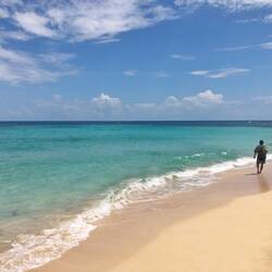 Apo und ich floaten genüsslich im glasklaren Wasser und können unser Karibik-Glück kaum fassen.