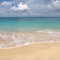 Wir ignorieren den Regen und genießen unseren ganz privaten Traum-Strand.
