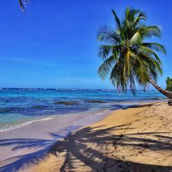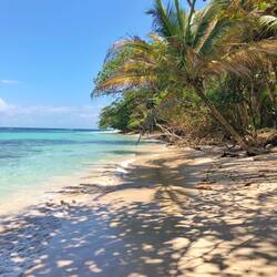 Am letzten Tag unserer Besucher Chris, Sebi und Apo strahlt die Sonne aus voller Kraft und wir machen einen Ausflug quer durch die gesamte Inselgruppe. In der Bahia de los dolfinos wimmelt es tatsächlich vor diesen verspielten Tieren und immer wieder präsentieren sie uns ihre Schönheit, indem sie neugierig ans Boot heranschwimmen. Am allerliebsten würde ich direkt reinspringen, aber die fußballgroßen Quallen halten mich ab. Kurz darauf stoppen wir am Cayo Coral, wo wir mit Seesternen und anderen lustigen Tierchen schnorcheln dürfen. Das Highlight heute ist aber ganz klar die Isla Zapatilla. Karibik pur! Da wir einen Privatkapitän angeheuert haben und recht früh los sind heute morgen, haben wir die Paradies-Insel für uns ganz alleine. Die ganzen Tagesausflügler kommen wohl erst in einer Stunde an.