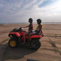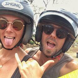 Auf unserem gemieteten Motorrad tuckern wir über die Insel. Naja genauer gesagt heizt mein Kamikazefahrer Felix stets einen Ticken zu schnell über die Bumper, sodass es mich hinten drauf in die Höhe katapultiert.