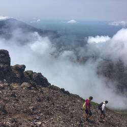 Der Weg ist wirklich anspruchsvoller als der Aufstieg beim Kilimandscharo. Geröll, lose trockene Erde, engste Pfade und riesige Felsen, die es zu überklettern gilt. Das letzte Stück ist dann sogar noch mal einen Ticken steiler und besteht nur noch aus bröckeligem Vulkangestein.