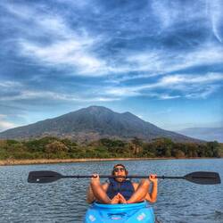 Mit Matt, Felix‘ Surfmate aus Popoyo, leihen wir uns Kayaks aus und paddeln auf dem See entlang, die beiden Vulkane ständig um uns herum. Dann biegen wir in einen Fluss ein, an dessen Ufern es nur so von abgefahrenen Vögeln wimmelt. Ein äußerst großes Exemplar fängt gerade als wir vorbeifahren einen dicken fetten Aal und scheitert kläglich am Versuch, diesen dicken Muskelschlauch runterzuwürgen.