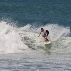 Wir spazieren am Strand entlang zum Mag-Rock, einem Restaurant auf einem Felsen, von dem aus wir den Surfern zuschauen, die athletisch in den Sonnenuntergang hineingleiten. Wenn ich mir das so anschaue, kann ich Felix‘ unbändigbare Surfleidenschaft sehr gut nachvollziehen. Ich freue mich für ihn, dass er hier in Popoyo seinen Surfertraum leben kann: