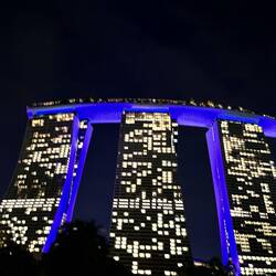 Supertree Grove und Symphonie of Lights neben dem berühmten Marina Bay Sands