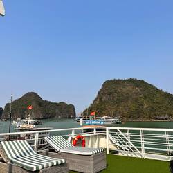 Um 9 Uhr trafen wir uns am Schiff mit Ralf einem deutschen Auswanderer. Nach kurzer Fahrt mit dem Bus zum Tuan Chau Hafen und stiegen dort auf die 5* Amethyst Junior, einer luxuriösen Yacht.