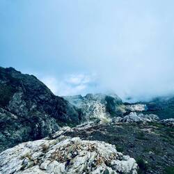 Nach den anstrengenden ersten Kilometern erreichte ich schließlich den Gipfel. Leider war das Wetter nicht ideal – die Aussicht war etwas bewölkt, und ich wartete eine Stunde in der Hoffnung, dass sich der Himmel aufklären würde. Es wäre mir lieb gewesen, noch länger zu bleiben und die spektakuläre Landschaft zu genießen, aber ich hatte noch eine Weiterfahrt nach Tofino geplant.
