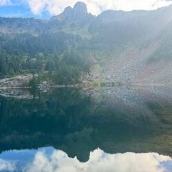 Auf meinem Abstieg begegneten mir viele Wanderer, die sich auf den Weg zum Summit oder zum Cobalt Lake machten. Dieser malerische See ist bekannt für sein kristallklares Wasser und die tiefblaue Farbe, die durch die Mineralien im Wasser entsteht. Der Cobalt Lake ist ein beliebtes Ziel für Wanderer und bietet zahlreiche Möglichkeiten zum Schwimmen und Entspannen in der Natur. Die umgebenden Wälder und die majestätischen Berge schaffen eine perfekte Kulisse für ein Picknick oder eine kurze Pause.