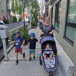Its reviews are great, but its a narrow stair entry that won't fit the pram. What to do? Im in first to scout, check for an English menu and see if our cumbersome needs can be met.