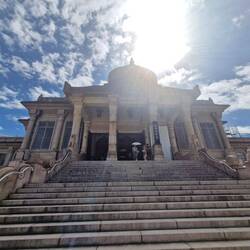 A spontaneous, unplanned morning ahead. Ryland and I have a Sumo Tournament to attend in the afternoon, Monday is (sorta) planned, but we have a gap this morning. Axel wanted the 'Ham Cheese Toastie' the hotel offered so OK lets do that and.. 'searching for different ideas' the.. uh.. Tsukiji Hongan-ji Temple about half hour away in Chuo City.
