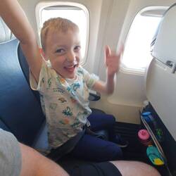 Up at 7, kids fed and dressed. Backpacks and kids car-seats dragged to the curb outside our hotel, waiting for pickup and transferLeia mais