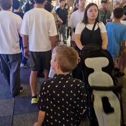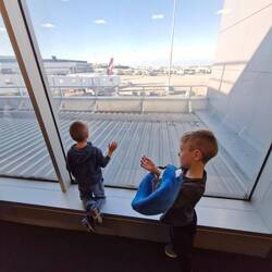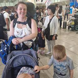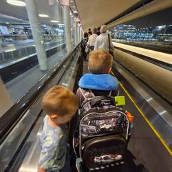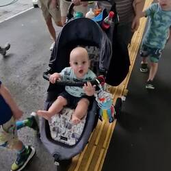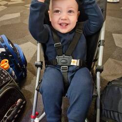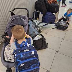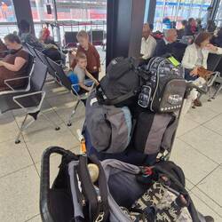 We just about dragged that all through bag drop, the pram at oversized luggage, customs and to our gate. We managed to score a loan-pram that looked designed more for dolls than humans, but no complaints from little Zander who loved holding on for dear life as he was ushered around.