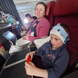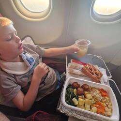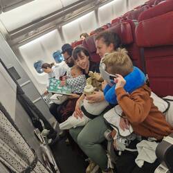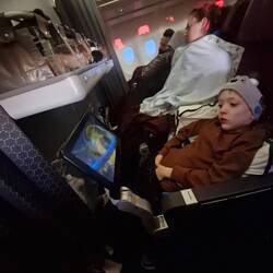 We arrived at Narita around 5pm for a 830 flight. Its a pretty good airport, and its limited shopping options beat any mall we'd visited. We picked up a few things, managed some playground time and a snack for us all, by which time we were still rushed to board. It was pretty chaotic. Its a packed flight and I think theres 9 infants aboard.
