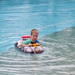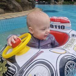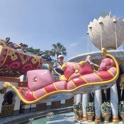 Axel has not had a flying start to this trip, constantly wailing, sulking, being naughty, not listening. Much worse than usual. He, the heat, fatigue and crowds blocking the Toystory snd Terror Tower rides had me losing morale, so we headed straight for the next option, Aquatopia. 20min wait wasn't too bad and the boys loved it. We followed up with the Nemo & Friends Searider next door. Unfortunately no luck for Zander (and Nat) on these first two.