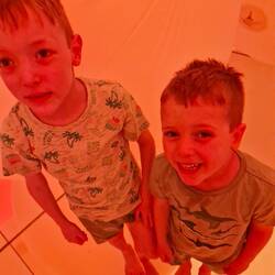 Bags mostly packed, a toastie and cereal and we're off, under the light of a lunar eclipse. The first half hour, this is what I hoped for from the boys. Pure excitement. Thrown out of routine and their comfort zone.