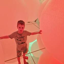 The Odaiba Bay/beach front area was nice enough. A sandy bay with a boardwalk and loads of jumping/flying fish! We stopped here for dumplings and kids meals for lunch. TeamLabs, booked for 4pm was incredible. What a place. I had high hopes and wasn't at all disapointed. From light art displays, winding corridors, illusions, wading through water, jumping or having your drawings come to life, it was a memorable place Im sure we all enjoyed. With the kids wearing thin, we just went simple with a Japanese Maccas experience on the way home.