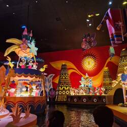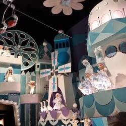 Today, thankfully, the storm held off until 3pm. When it hit, it hit hard. Thunder and lighting forewarned of the inevitable downpour that seemed to soak the surface in 5minutes, leaving ankle deep puddles aplenty. We ponchoed-up and sheltered beside the Pinnochio ride. I decided to whisk Ryland and Axel across the way 100m to simultaneously shelter and torture them with the 'its a Small World' ride. Geez that ride is just as dated as annoying as my first encounter with it decades ago.
