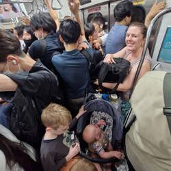 After jointly and individually carrying each of the boys (including Zander) over the scramble crossing half a dozen times, we were ready to ride the waves of crowds back to our hotel in Ryogoku via 40min of green and yellow train lines.