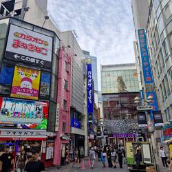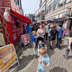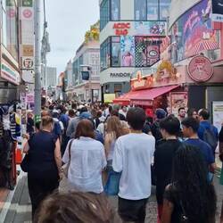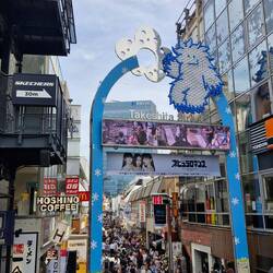 Onwards from there, walking through the garden took us to the border of Harajaku. We tortured around before finding the main drag here, Takeshita Street. It's a wacky, quirky street full of bizarre vendors, youth culture, and street fashion. You never quite know what to expect here, various foods, capybara and mini pig cafes, vending machine varieties, pumping music, flashing lights, and more.
