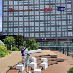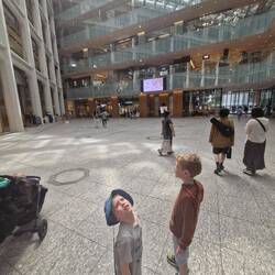 We woke for our final morning in Japan. Still a final expedition planned before we head home. We're all tired. Zander in particular has struggled for rest at this final hotel without a cot. Instead hes on a queen bed, fenced in with a poor makeshift barricade.