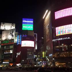 We got out at the Hachiko Gate exit, rolling right out at the world famous Shiboya Crossing. It was busy, but being about 9pm, not peak. The streets here were busy still, especially for a Monday night, lit up and aglow with advertising boards, T.V. screens and flashing lights. We wandered around the place abuzz, especially the Pachinko slot machine places, which may have impaired my hearing forever.