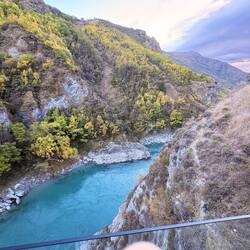Die Nacht war bescheiden, da der Stellplatz nah an der Straße war und es geregnet hatte, morgens schauen wir uns noch kurz die Bungeebrücke an, auch Bungeeswing und Zipline kann man hier machen.Read more