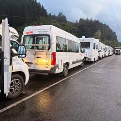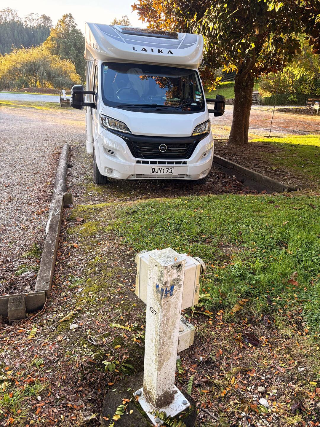 Auto leer (Pipibox, Grauwasser) bzw. auf der Fahrt nach Auckland wieder voll (Wasser/Diesel)