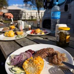 Das feuchte Werter verfolgt uns. Den Platz muss man um 8 Uhr räumen, da fahren wir ans Meer und machen dort erstmal Frühstück mit Avo-Toast mit den erworbenen Eiern nahe dem Meerwasserpool und demRead more